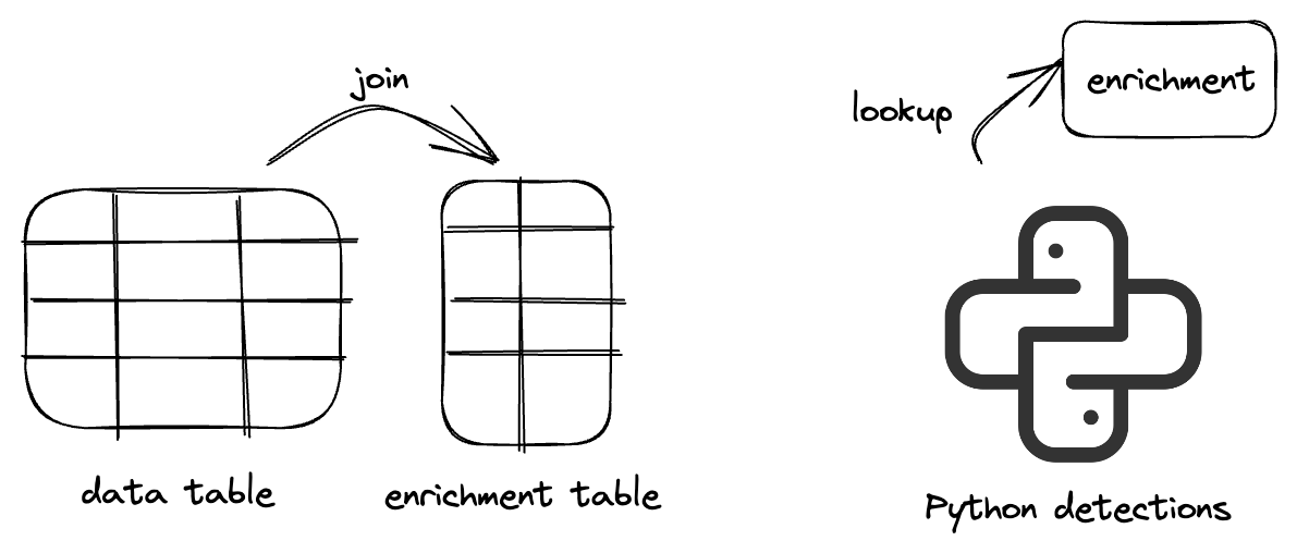 Previously, these enrichment tables were only ingested into Apache Iceberg tables, allowing you to perform SQL joins, as well as being made available inside Python detections using a lookup helper method. While this were powerful features, they come with some limitations, as they require a separate lookup, which can cause performance issues and ergonomic challenges, especially in SQL as it requires writing a join even for a simple lookup.